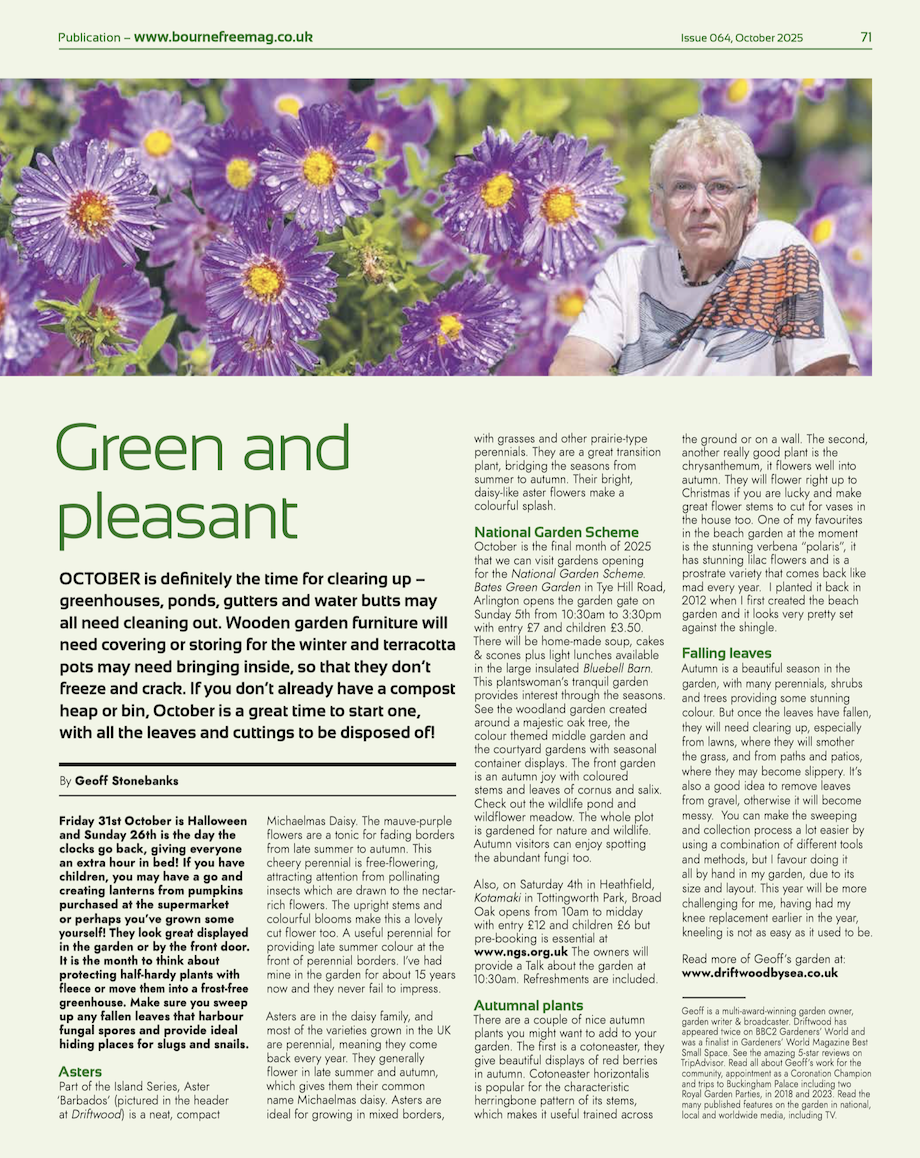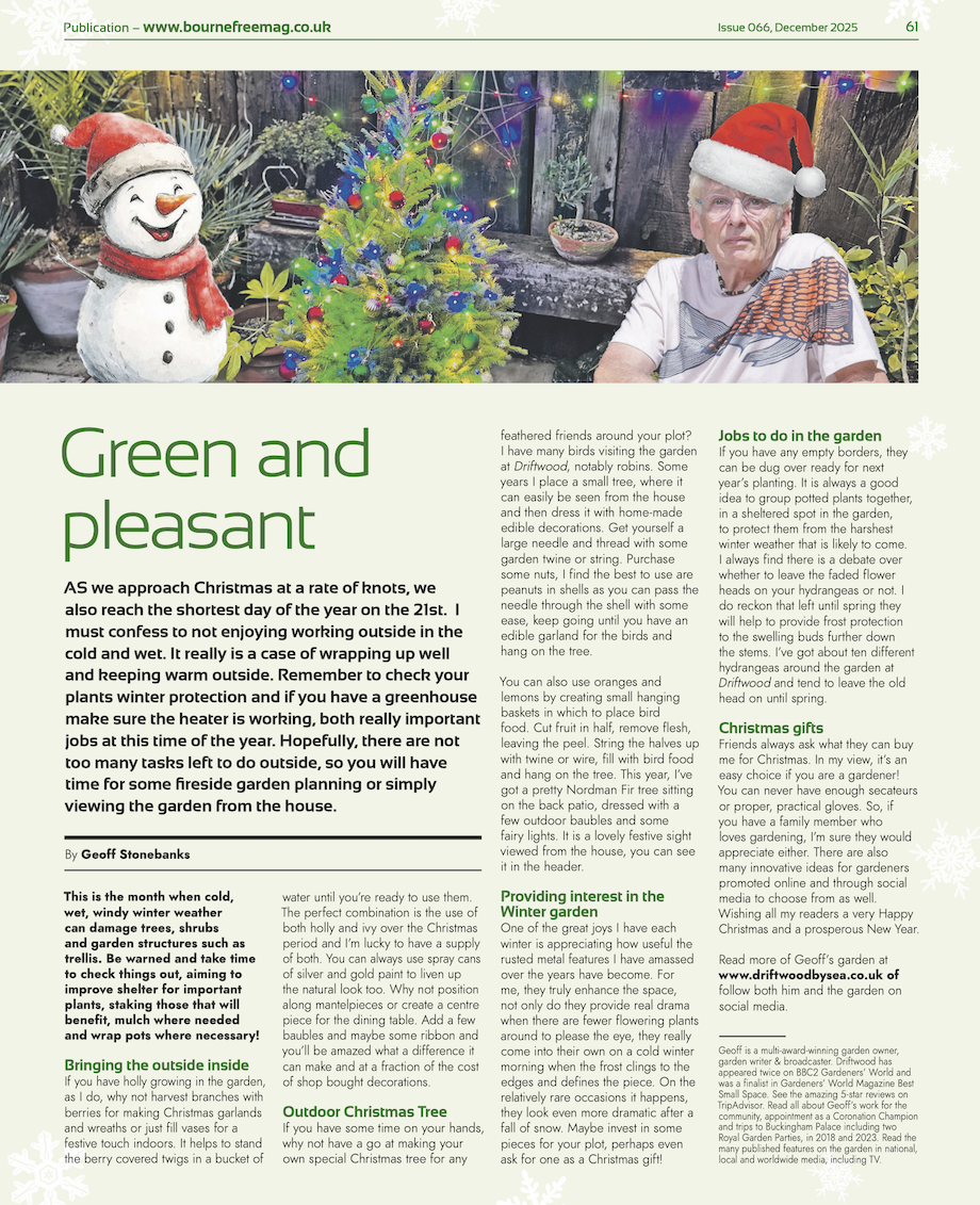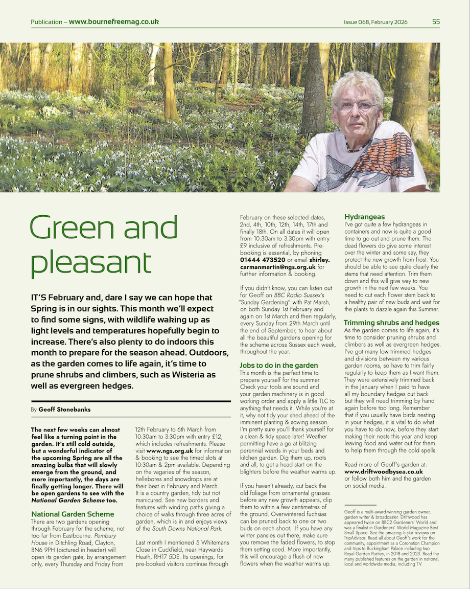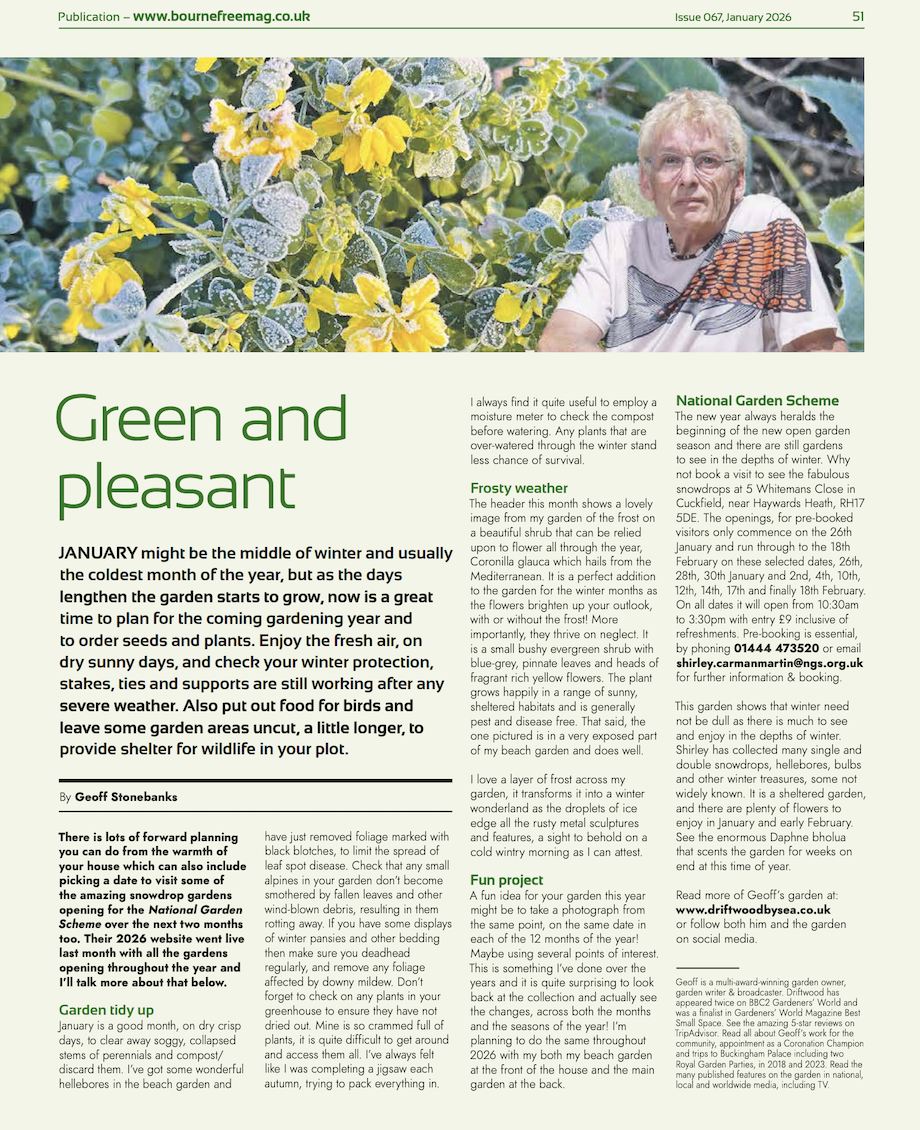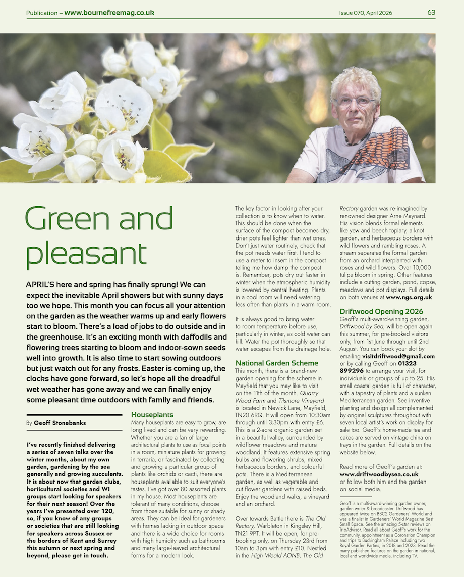 In late February 2020 I was approached to become involved with a new venture, a free newspaper called Bournefree, centred around Eastbourne. The request was to write a monthly gardening column. Each feature would then appear in the 10,000 circulation hard copy paper produced each month. Click each image to see the full size article and see the latest edition of the complete magazine here. |