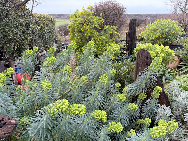 Beautiful euphorbia characias in the beach garden: February 2026 |