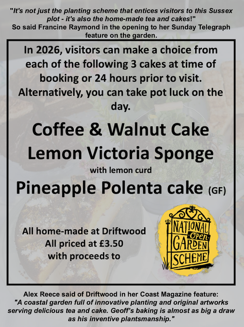 There will be local artist's work on sale in the garden too, see all 7 here and 2026 cake choices are shown here. Since 2009 almost 23300 visitors have seen the garden with £182,046 raised for various charities, £123,726 of this for Macmillan Cancer Support (2012 to 2025) through fundraising and volunteering.Garden owner named one of 500 Coronation Champions in 2023 for his charity work. Dogs on leads allowed.Check over 260 5-star comments on Trip Advisor or click below to see comments from our Visitor's Book. |