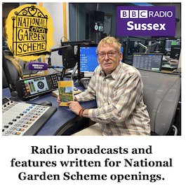 I began a weekly gardening column in the Brighton daily newspaper, The Argus, in April 2017 which continued to June 2022 when it was given a full page each week from July 2022. There is a monthly gardening feature in a magazine in Eastbourne called Bournefree, begun in April 2020. In my role as Publicity Officer for the National Garden Scheme in East & Mid Sussex, I frequently contribute articles to Sussex Exclusive on gardens opening and since 2013 have written scripts which I broadcast on BBC Radio Sussex, each month, between February and September. By clicking the buttons below you can see all columns, features, blogs and the book I've published on Blurb about the gardens development.The 2024 edition of my Blurb book is expensive as printed copy by copy but the PDF digital version is just £8 plus VAT. Click book cover below to purchase either. | ||